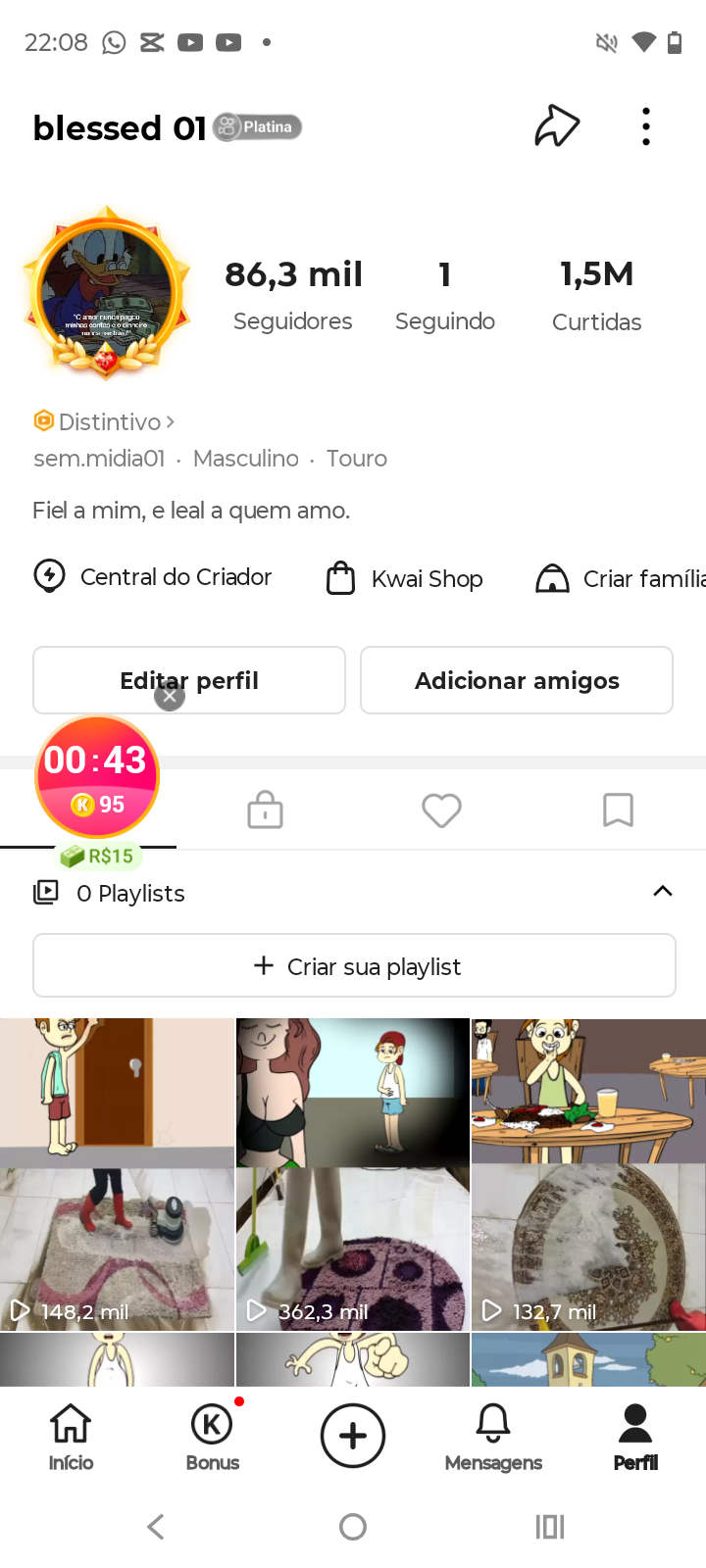 - Link da Conta: https://k.kwai.com/u/@sem.midia01/CJXvMzN3