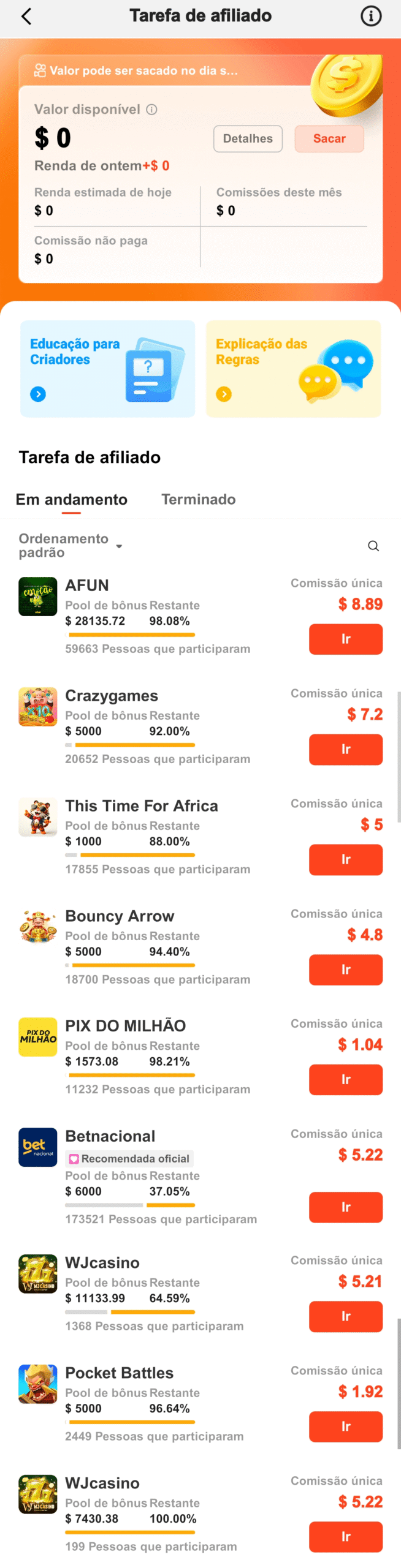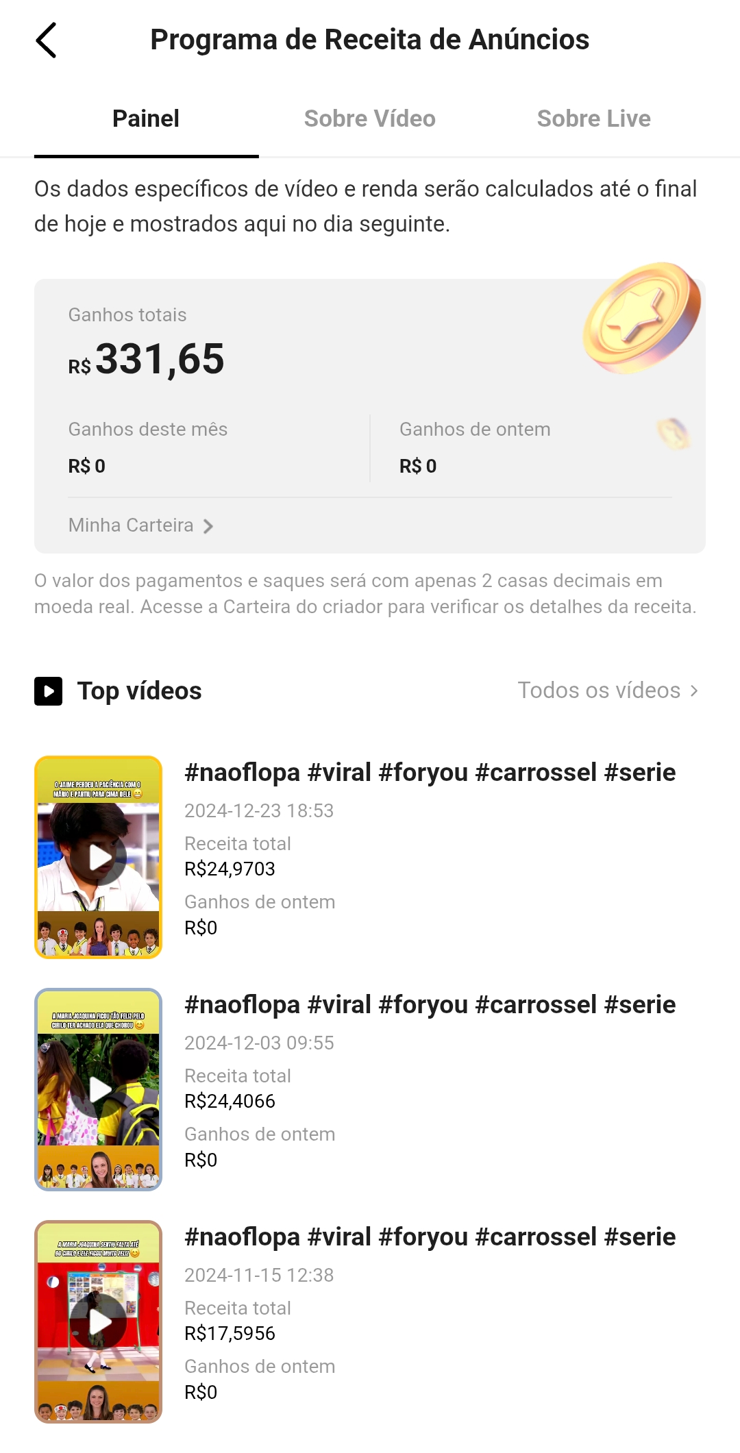 Monetização e patrocínios: Sim, através de Tarefas de Criador e também nos vídeos através do programa receita de anúncios.