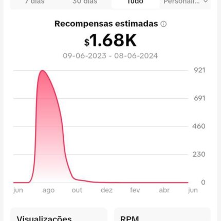 Conta monetizada em espanhol, rpm médio 0,08.