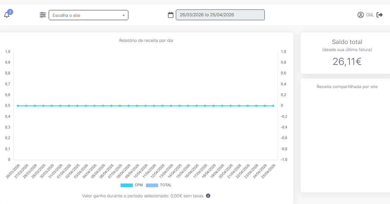 Conta na Themoneytizer com 26 Euros de Saldo