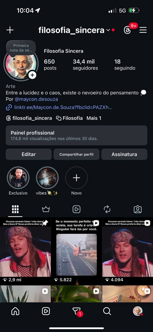 Perfil consolidado no nicho de filosofia, com 34.400 seguidores reais, orgânicos e qualificados.