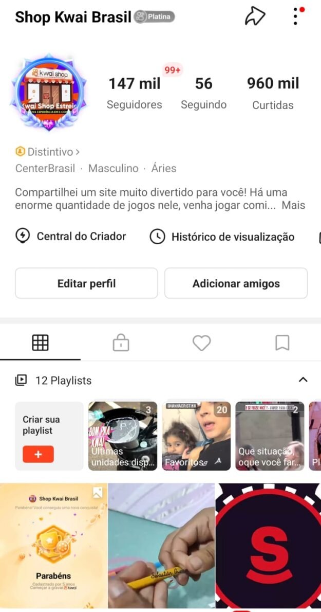 Conta no Kwai 147mil inscritos e 960mil curtidas