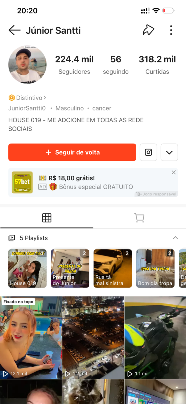 - Link da Conta: https://k.kwai.com/u/@JuniorSantti0/5zbCzXAX