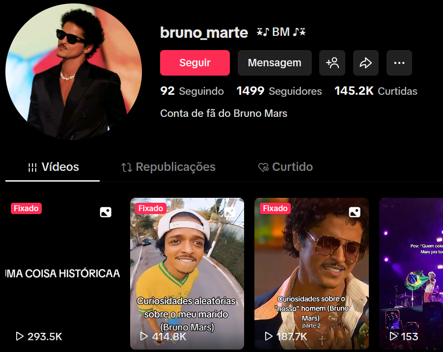 - Link da Conta: https://www.tiktok.com/@bruno_marte