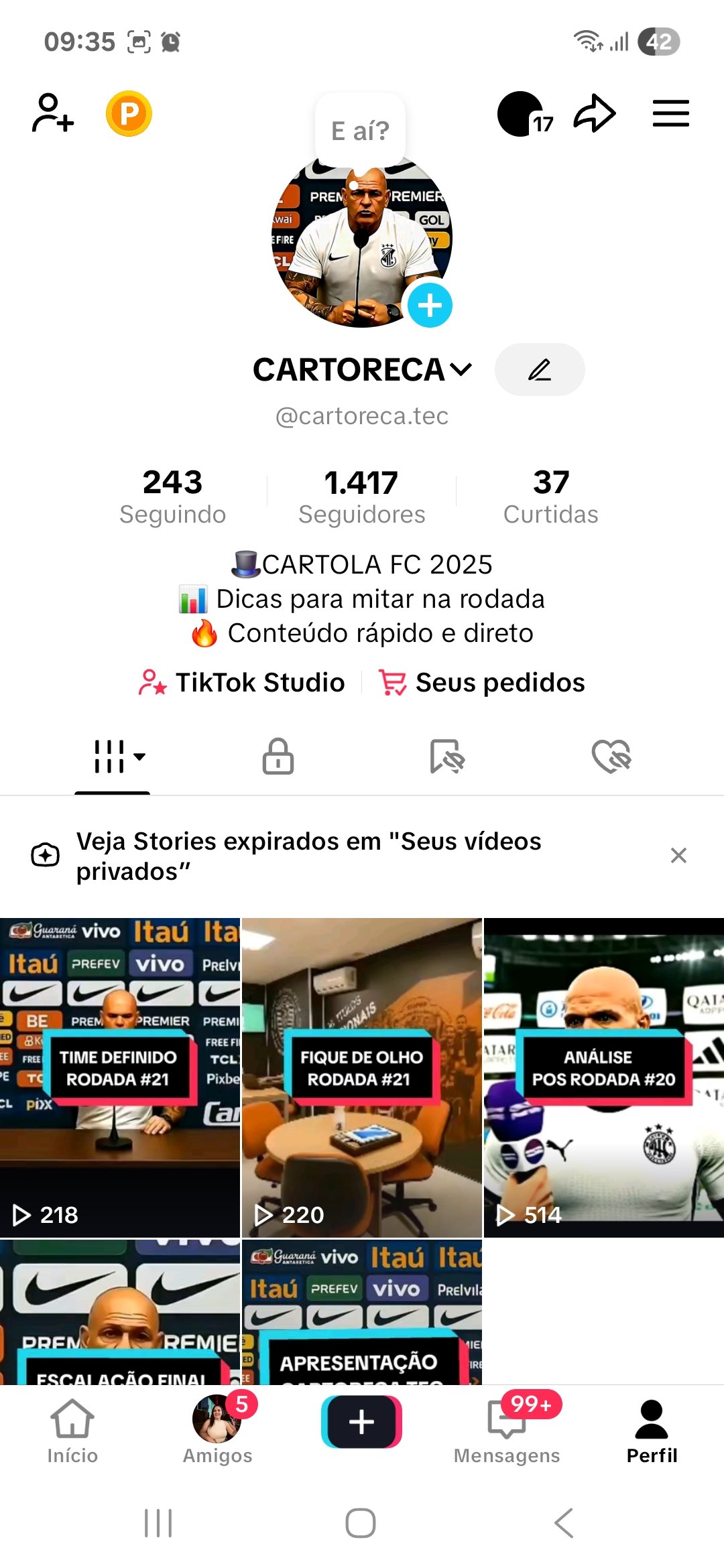 Conta Tik Tok nicho esportivo Brasileira não monetizado ainda, estou migrando para o youtube porisso a venda.