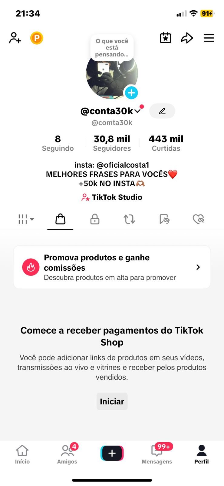 conta tiktok 30 mil seguidores, conta monetizada e shop ativo sem documento live studio liberado