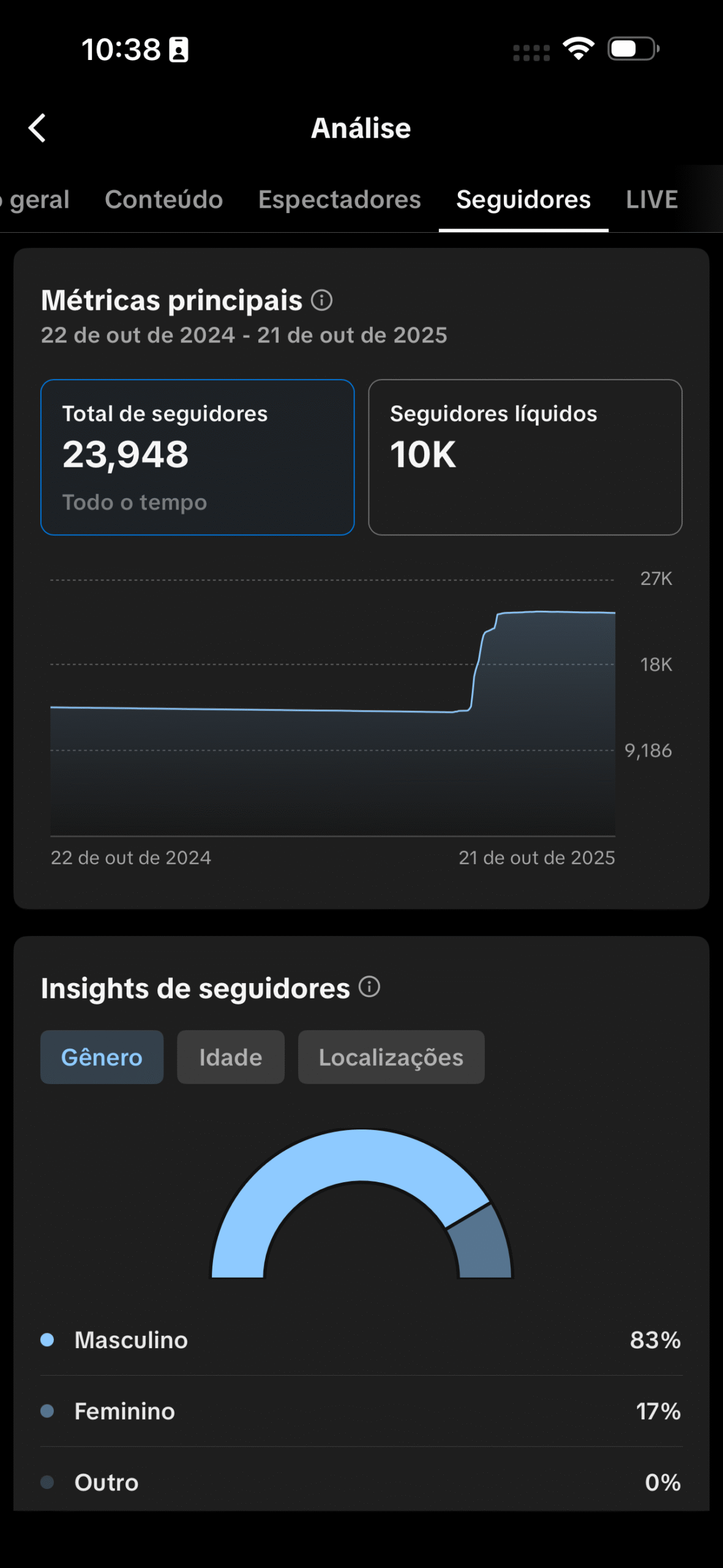 • 👥 23,9 mil seguidores totais (+10 mil no último período)