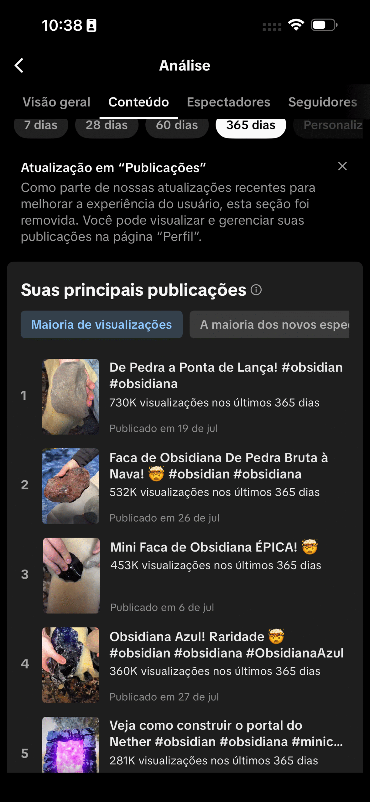 • 🔝 Vídeos com até 730 mil visualizações