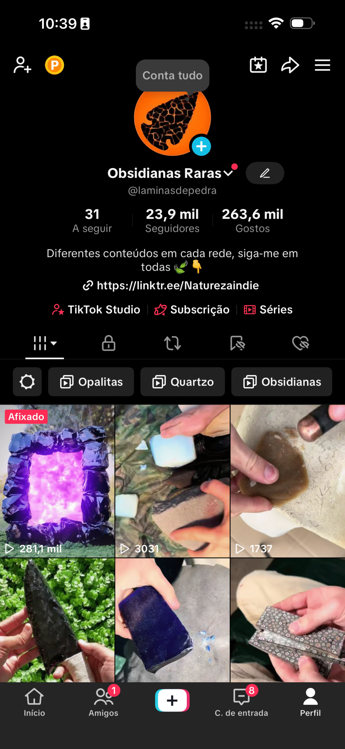 Conta TikTok ativa e monetizada, focada em vídeos sobre transformação de pedras em armas artesanais — como pontas de flecha, lanças, facas e esculturas manuais.