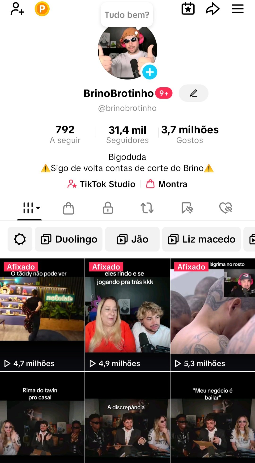 Conta do tiktok monetizada com 31,4 mil seguidores e 3,7 milhões de likes