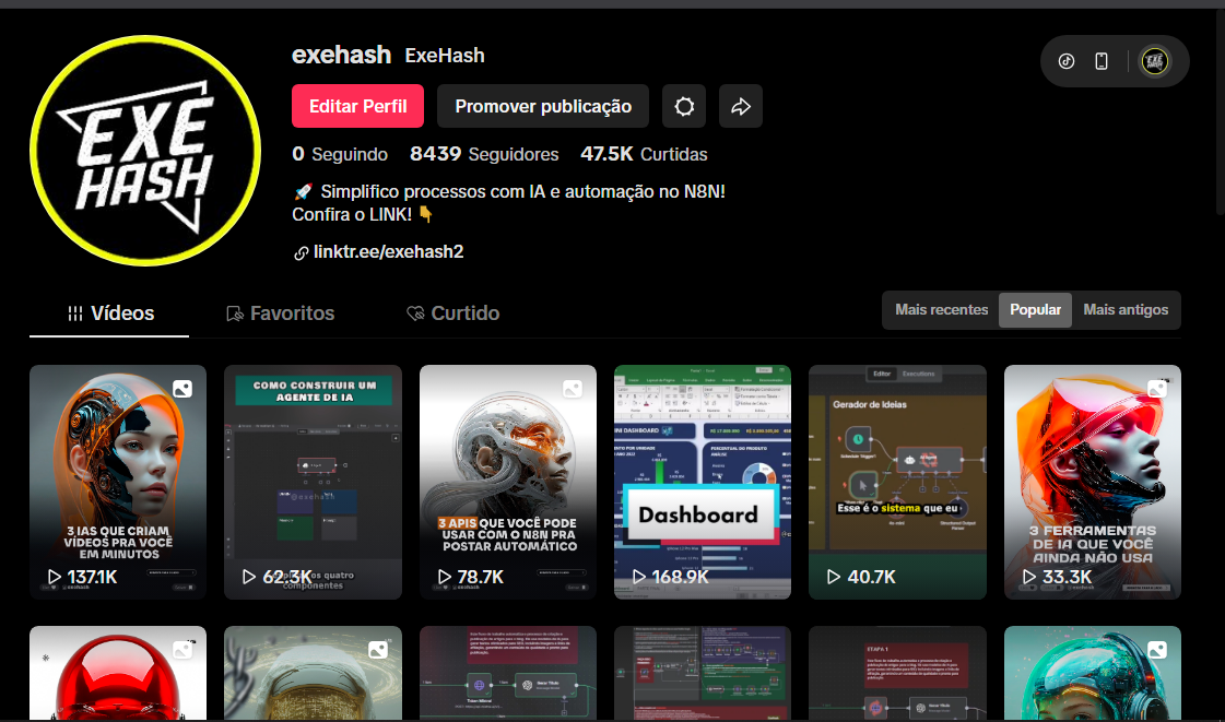 Conta do nicho de Inteligência Artificial e Automação (N8N) com resultados reais e comprovados.