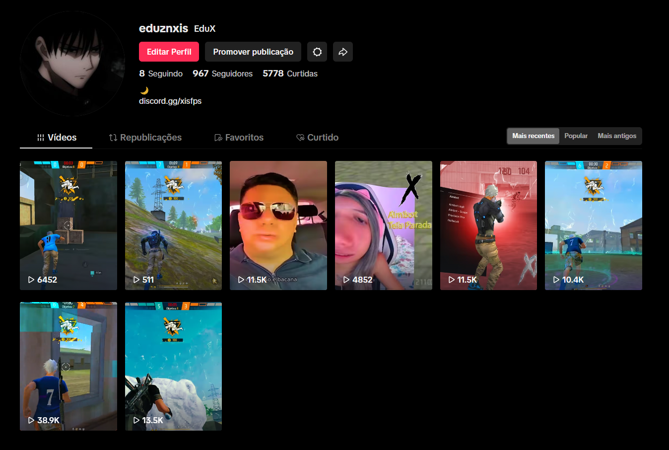 Conta Tiktok com nicho de Free Fire 967 Seguidores 5778 Curtidas