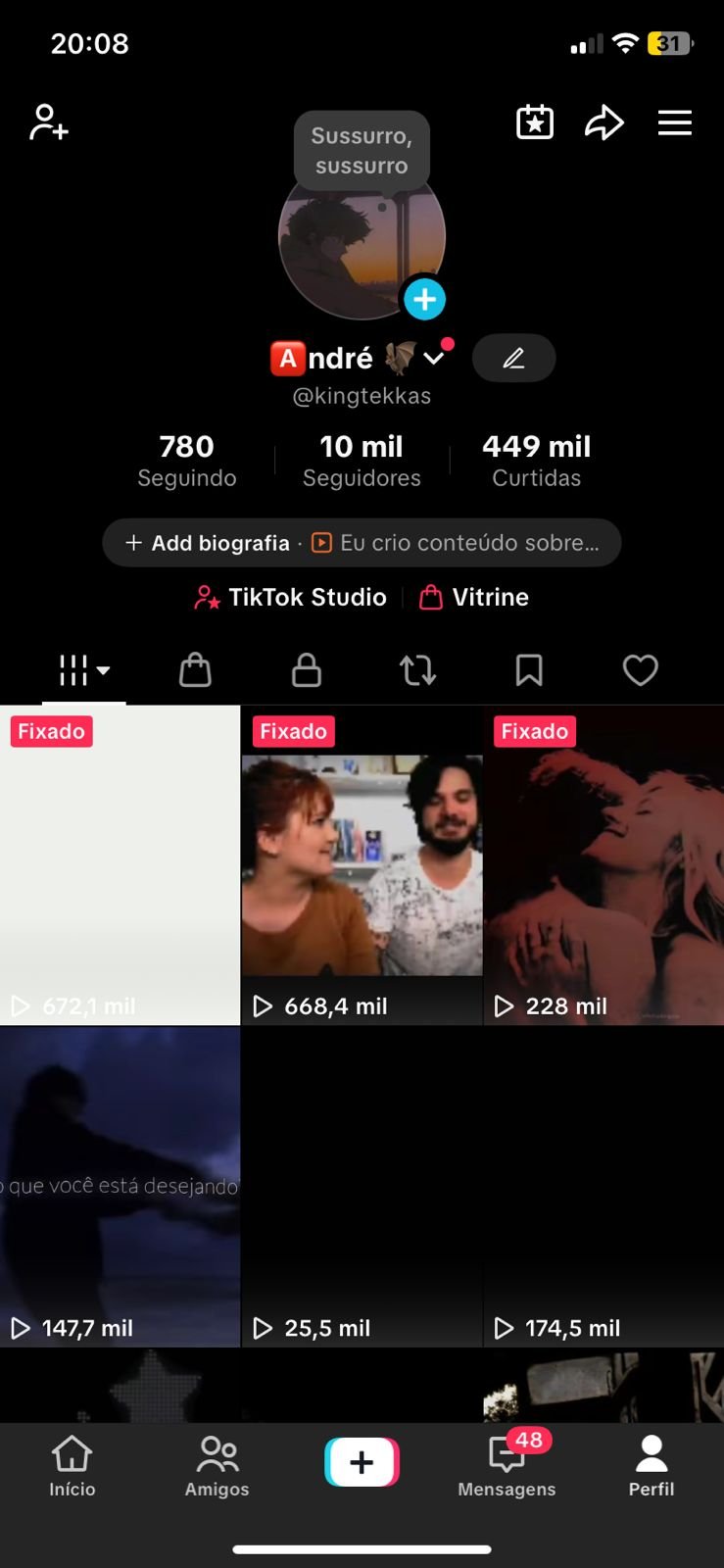Conta TikTok DARK +10 mil seguidores 500K Likes Vídeos Viralizados