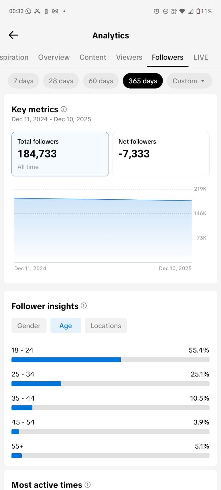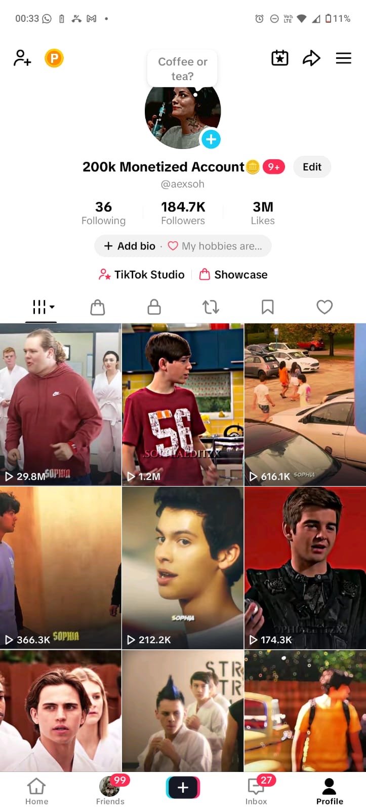 Conta TikTok monetizada 184k de seguidores reais e orgânicos subindo todos os dias.