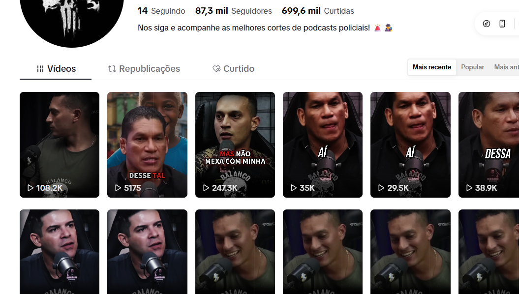 Conta Tiktok Monetizada 85K Seguidores / cortes de podcasts policiais