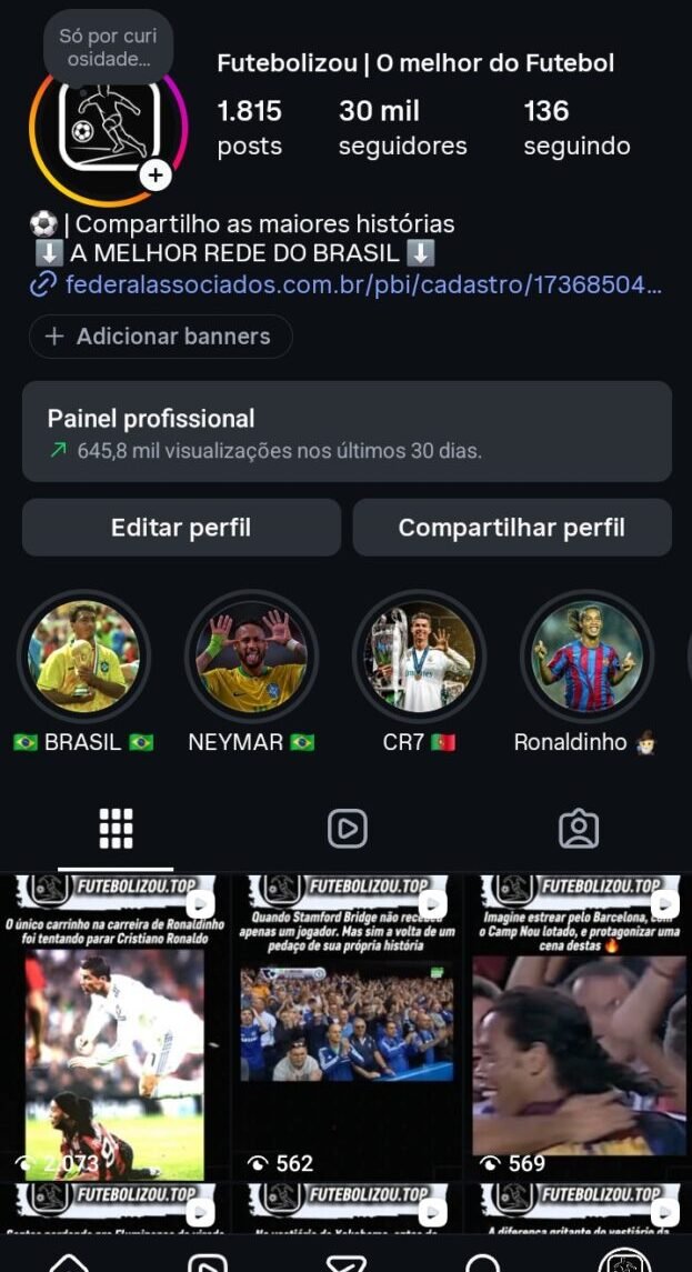 - Link da Conta: https://www.instagram.com/futebolizou.top?igsh=ZXp0OW16MnF2enEz