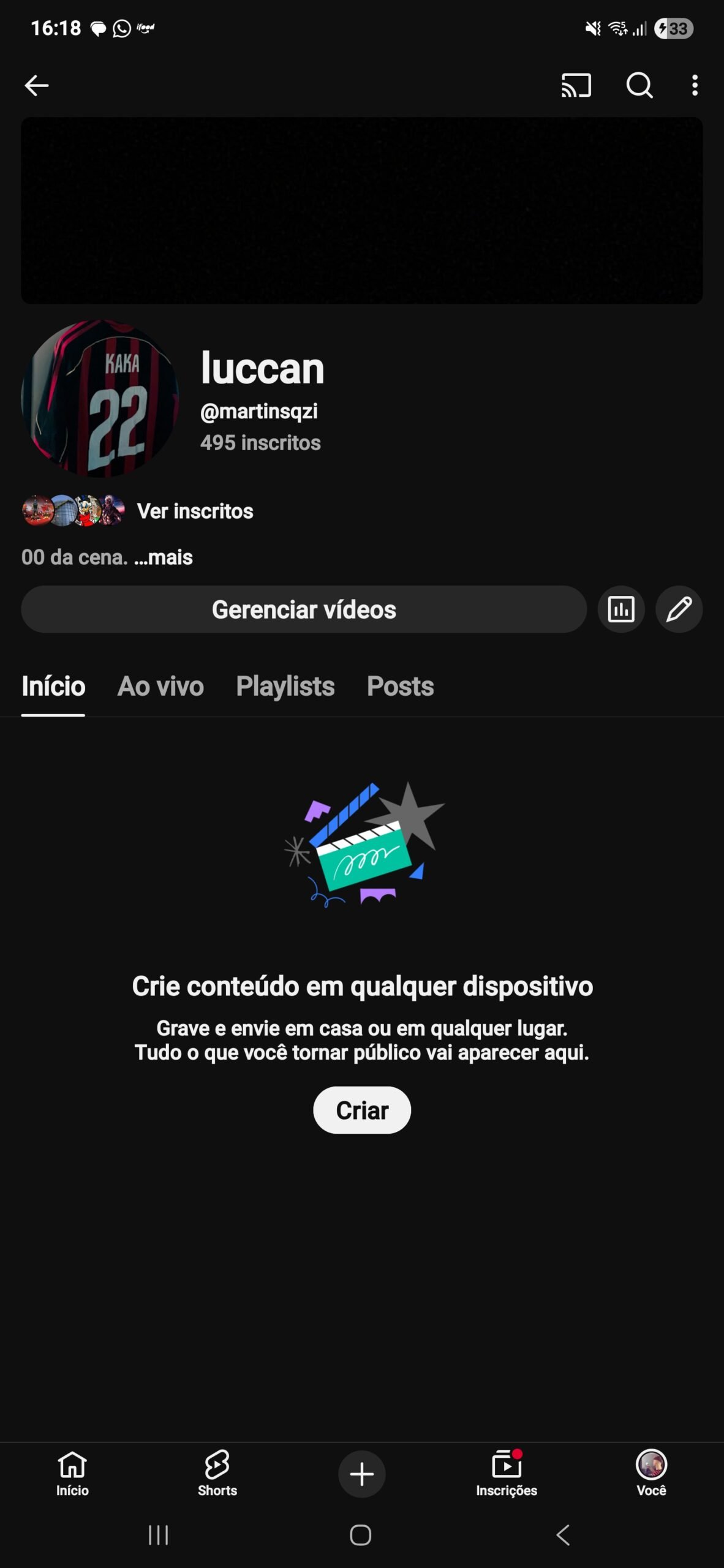 Tenho um canal com 495 Inscritos, sem video nenhum.