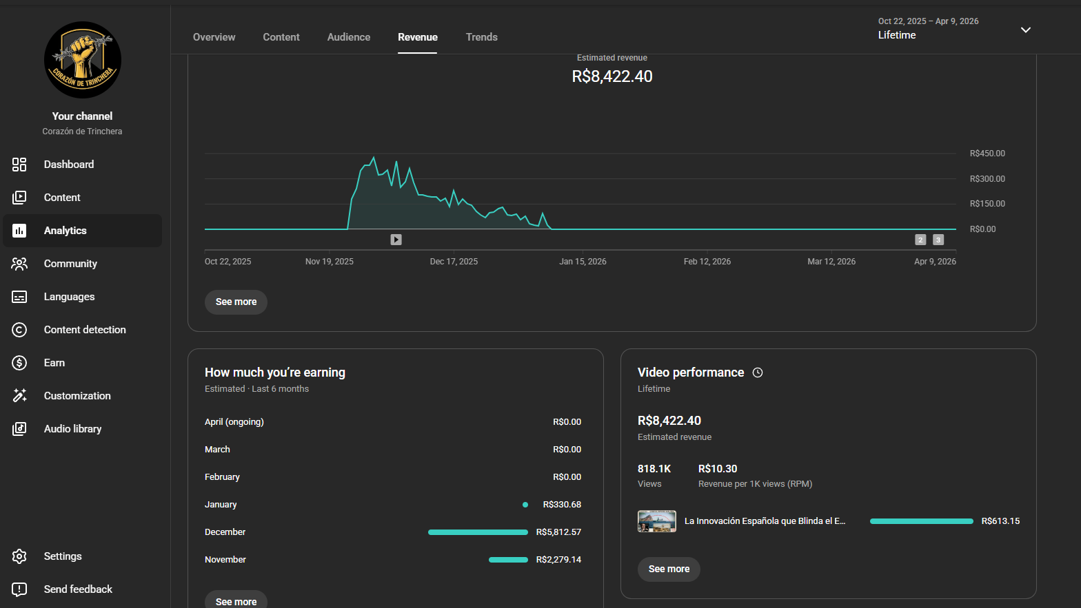 Canal com Histórico e com audiência formada, recém desmonetizada, porém, com público fiel e alto trusted score. Ótimo para vender infoprodutos ou remonetizar novamente, alta rentabilidade (cerca de 6 mil reais mensais).