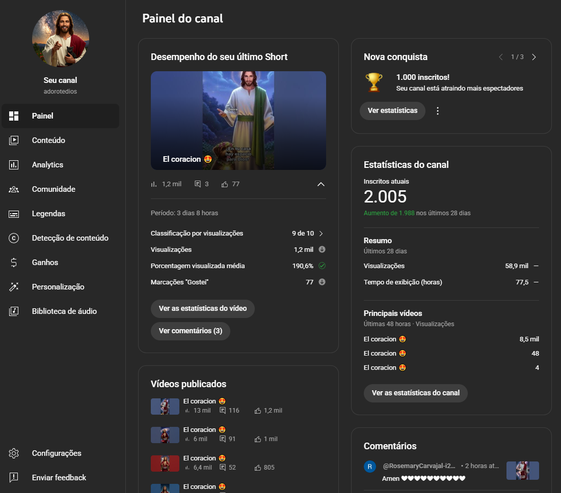 Canal YouTube Nicho Religioso C/ 2.4K + inscritos ( Em Espanhol ) – NENHUMA RESTRIÇÃO – Email De Criação