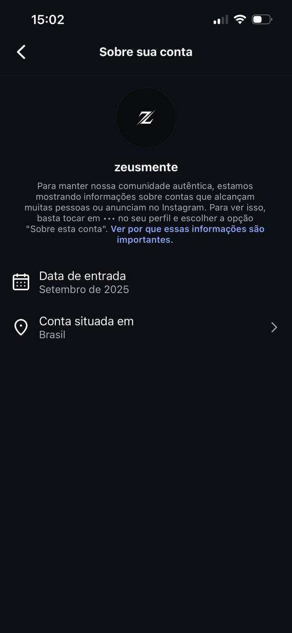 - Link da Conta: https://www.instagram.com/zeusmente?igsh=MTJxbzdvYjRucDVqMA%3D%3D&utm_source=qr