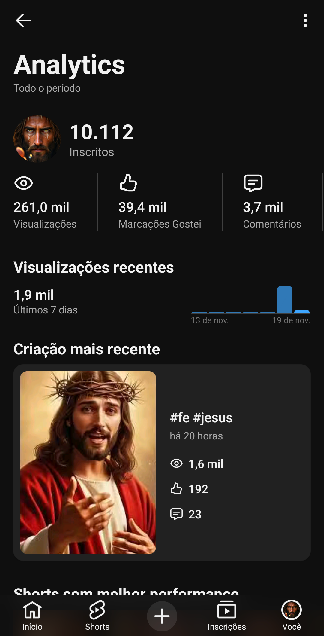 Canal YouTube com mais de 9k de inscritos e 1mi de visualizações