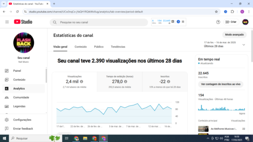 Ótimo canal Para quem tem projetos para ganhar dinheiro com o youtube, pois o canal esta so precisando de constância. pois estou sem tempo para cuidar do canal , mas como pode ver ele pega em media 100 visualizações por hora e 6 a 10 k em 48 horas. ja faturei mais de 20 k com esse canal.