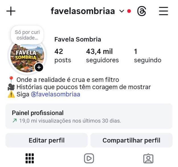 - Link da Conta: https://www.instagram.com/favelasombriaa?igsh=MTc0am1jamQwbnpwYg==