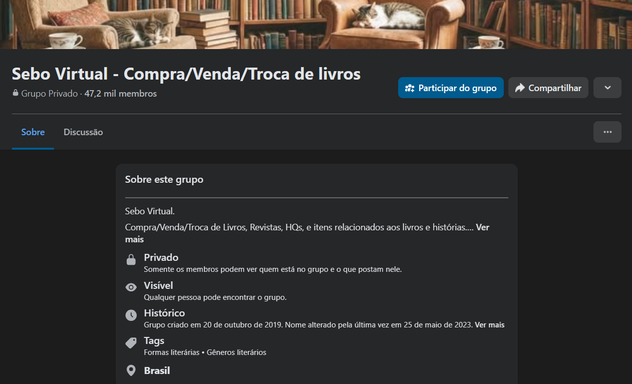 Um grupo do facebook focado em negociação de Livros e itens de coleção, com grande movimentação e grande numero de usuários ativos todos os dias.