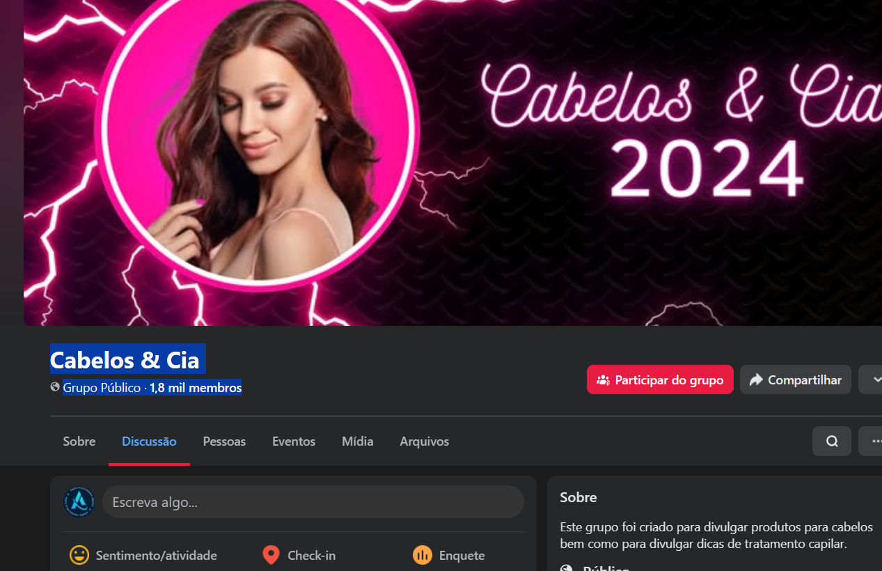 Grupo de Venda de Cosméticos Capilar com 1..800 membros(99% mulheres).
