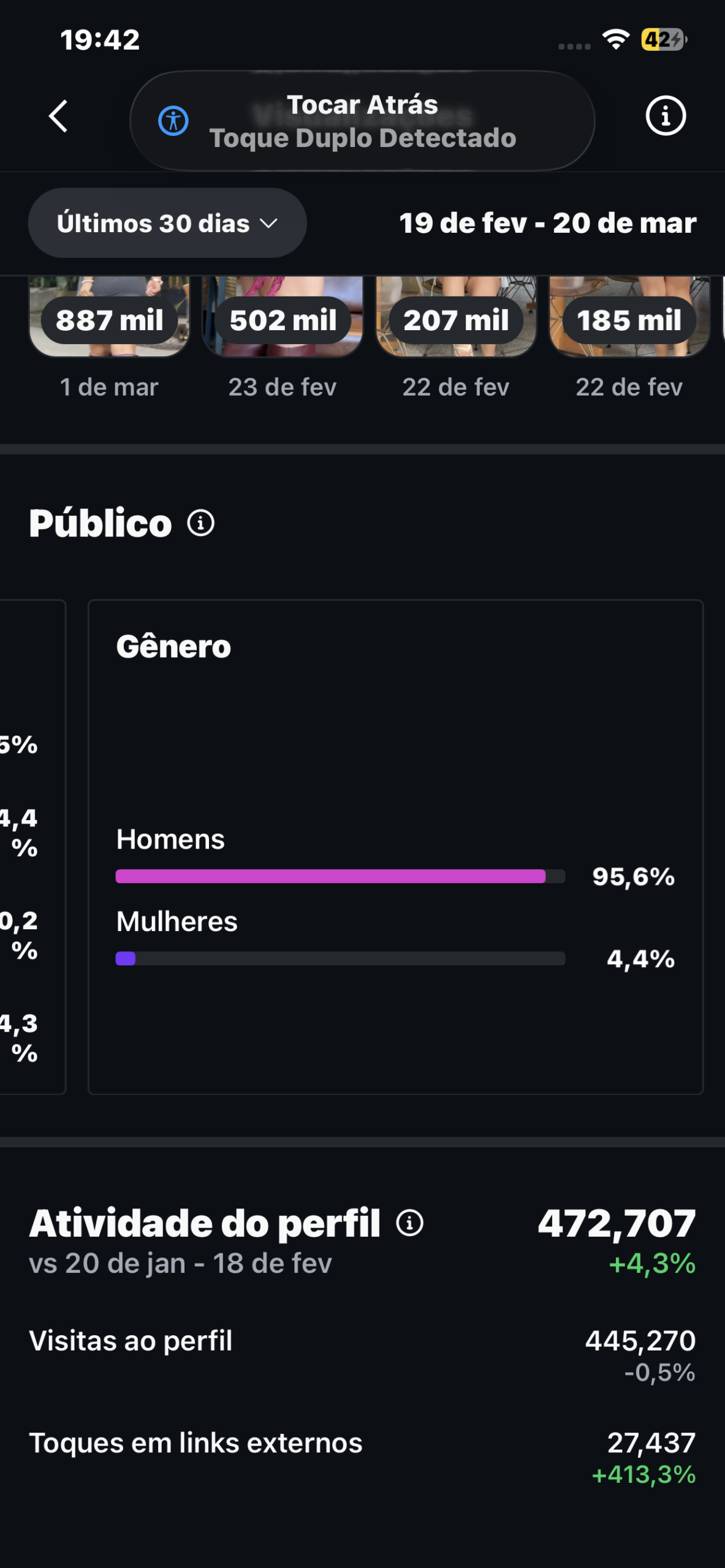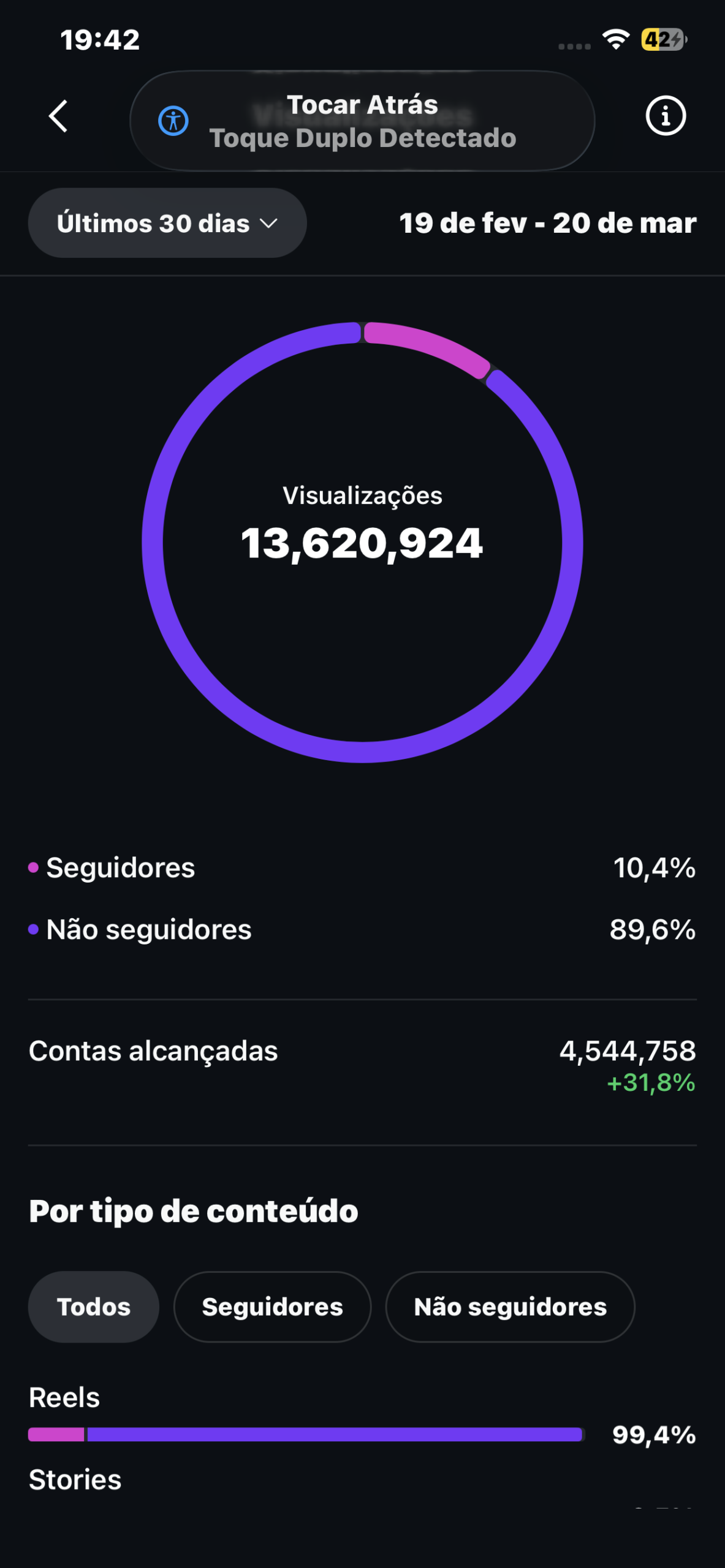 Conta com +17.1k de seguidores 100% autênticos e 80% br
