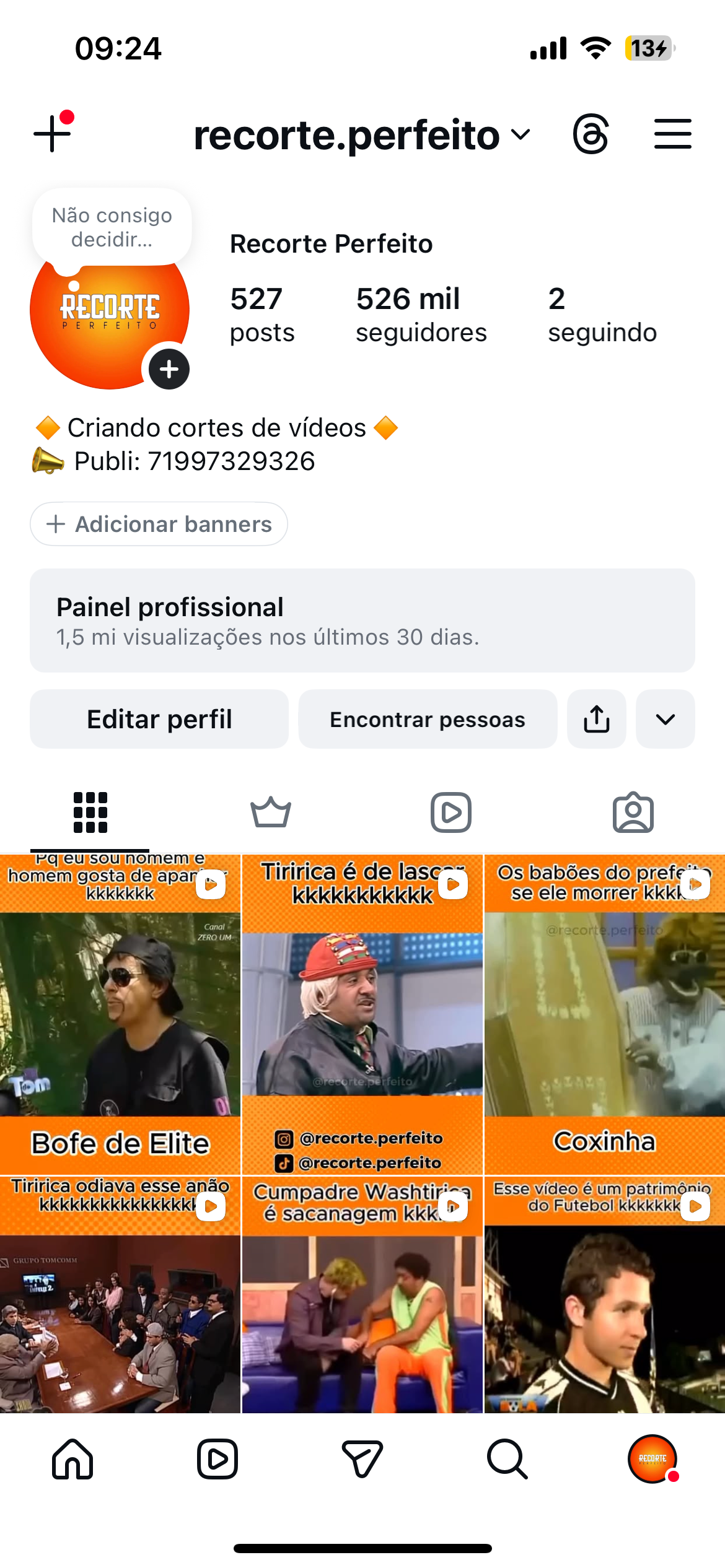 Insta: 526k Memes e Risos, 59k Stories, br 95% valor promocional de 35k por apenas 17.500