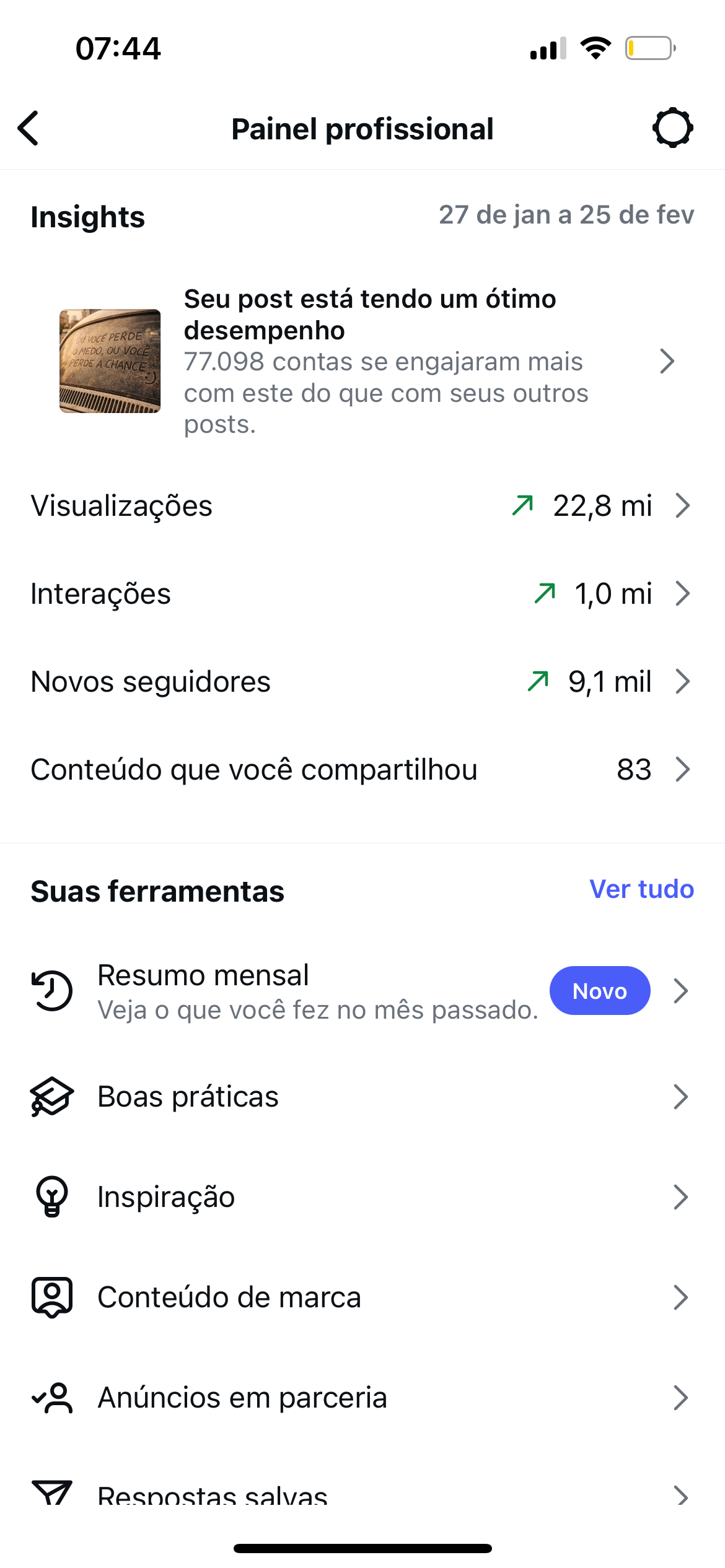Insta Motivacional 22 milhões alcance, 130 mil stories, com quase 1 M de membros