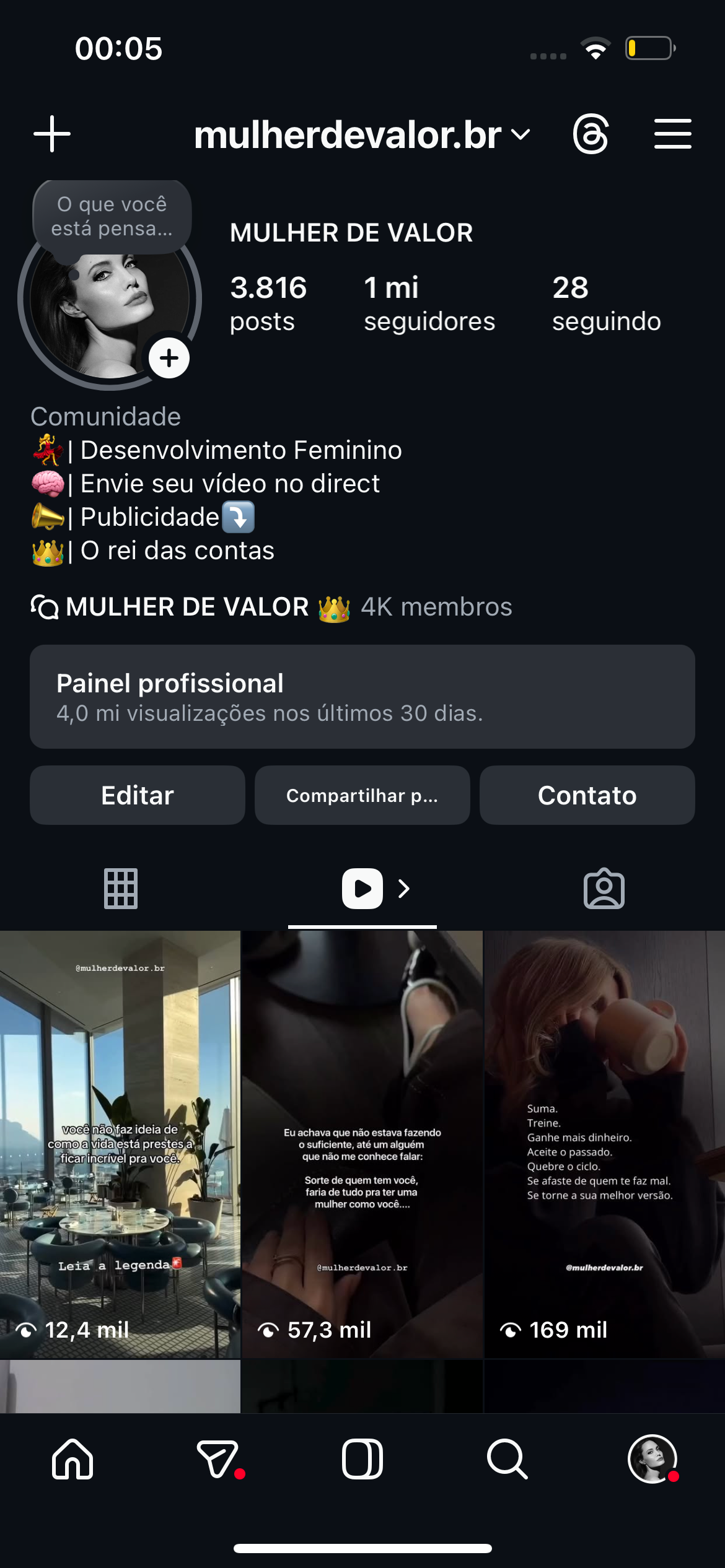 Insta 1M, Motivacional e lifestyle: stories medio 30k a 70k, zero restrição, br 98%