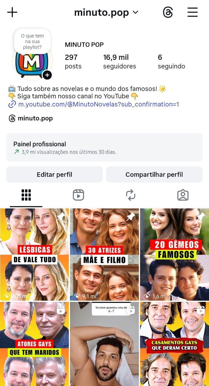 Conteúdo em um dos nichos mais consumidos do Instagram: cultura pop, novelas e famosos.