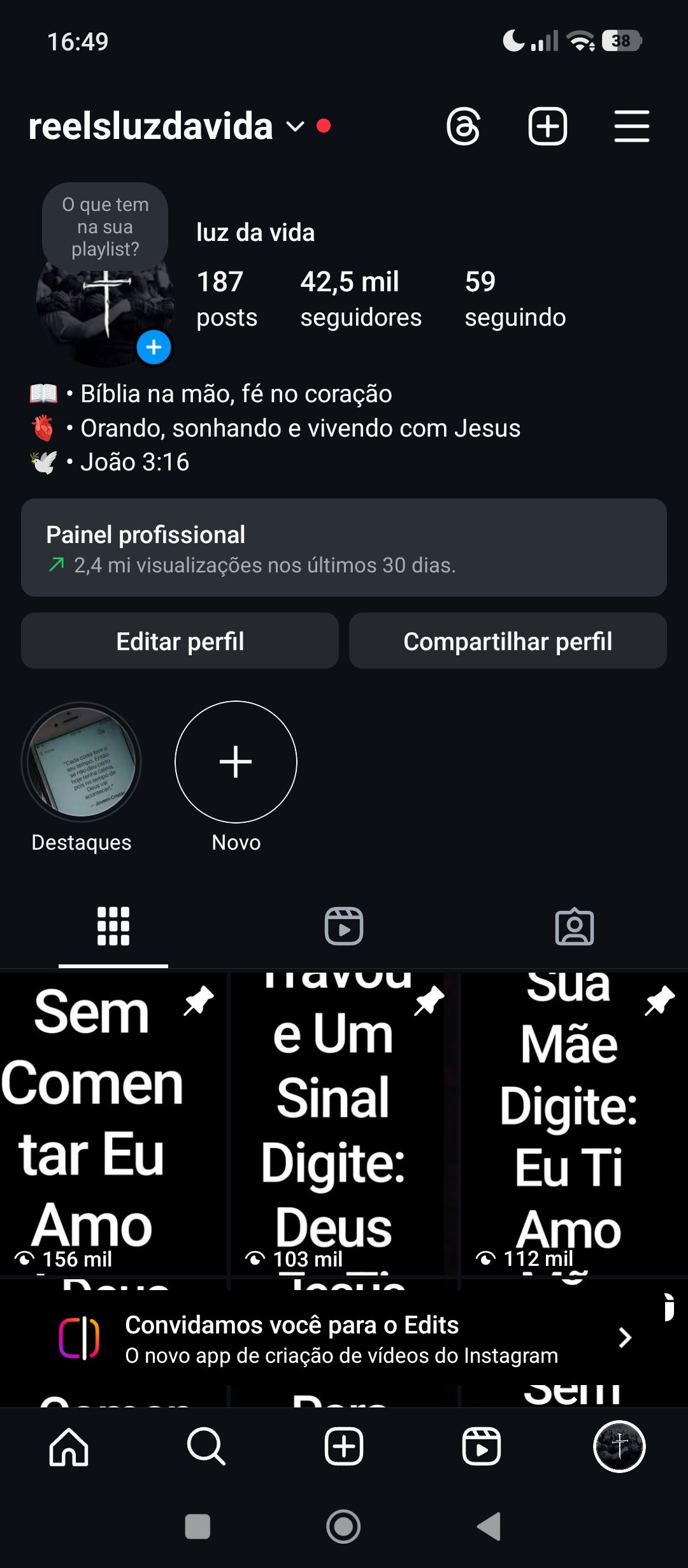 Conta com engajamento lá em cima com muitos vídeos na fy