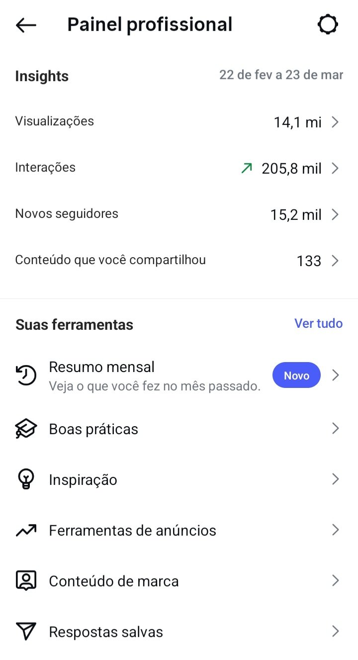 • +15K seguidores ganhos no último mês