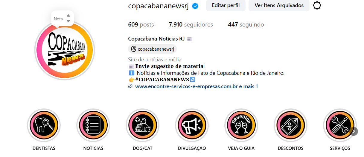O @copacabananewsrj é uma das principais mídias digitais dedicadas ao bairro mais famoso do Rio de Janeiro. Com conteúdo diário sobre notícias locais, turismo, cultura, gastronomia e eventos, o perfil se consolidou como um canal de referência para quem vive, trabalha ou visita Copacabana.