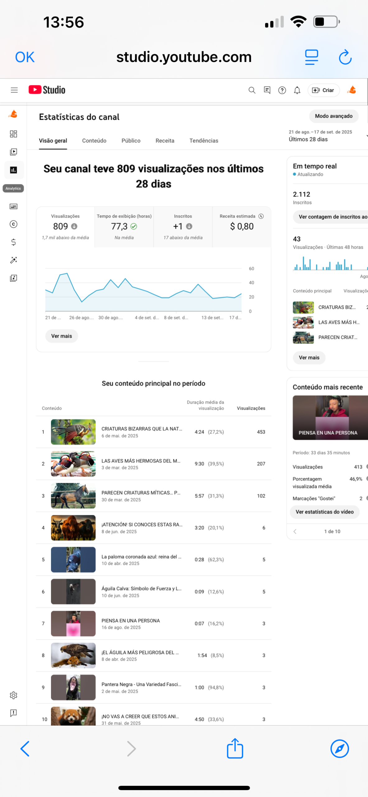 Canal com quase 23k mil inscritos limpo! Com bastante visualização. Barato pra vender logo!