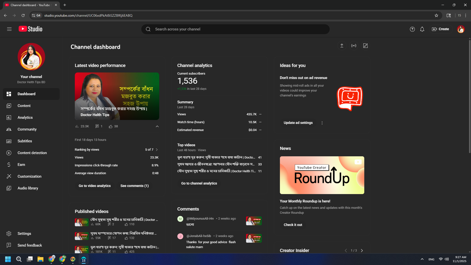 News Monetization Enabled Camera Content Channel (HQ) Doctor Helth Tips BD 1.500+ Subscribers