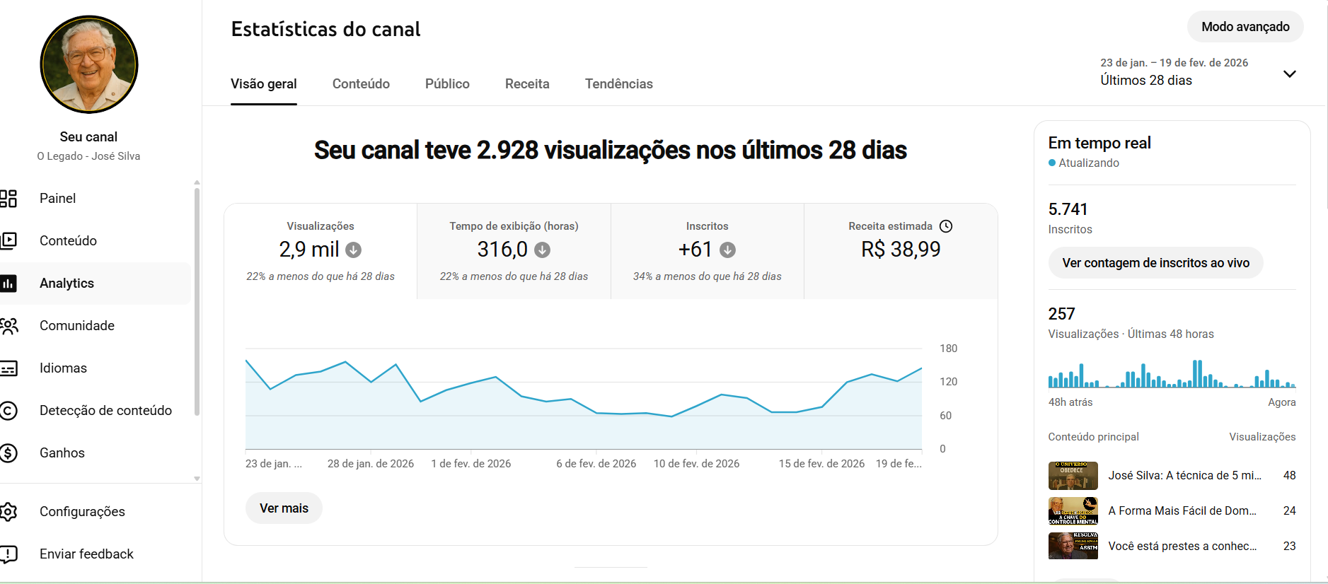 - Link da Conta: https://www.youtube.com/@OLegado-Jos%C3%A9Silva