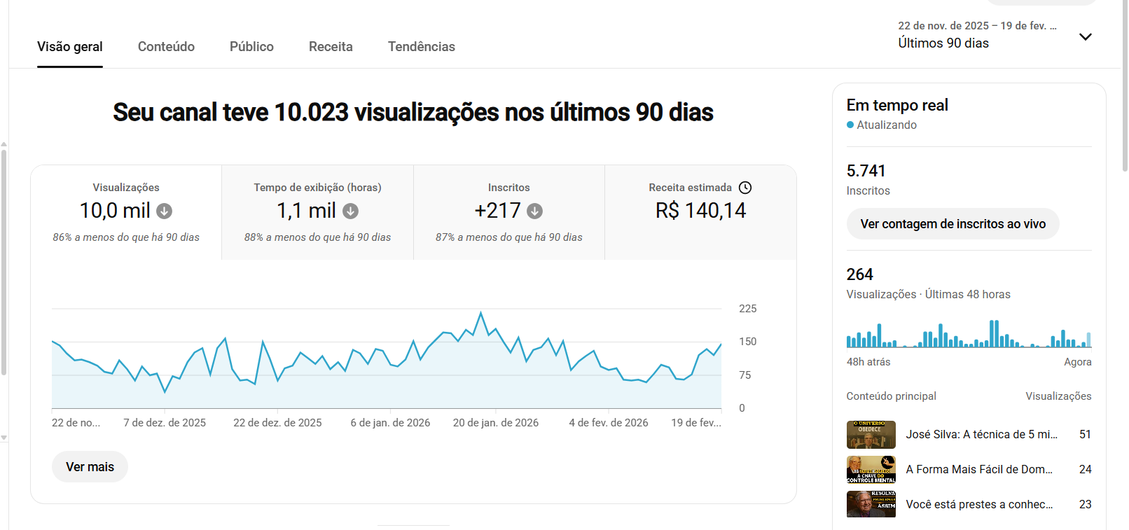 E´um canal de desenvolvimento pessoal tem 5.741 inscritos motivo da venda tenhos outros projetos no youtube . tem dinhero para sacar .