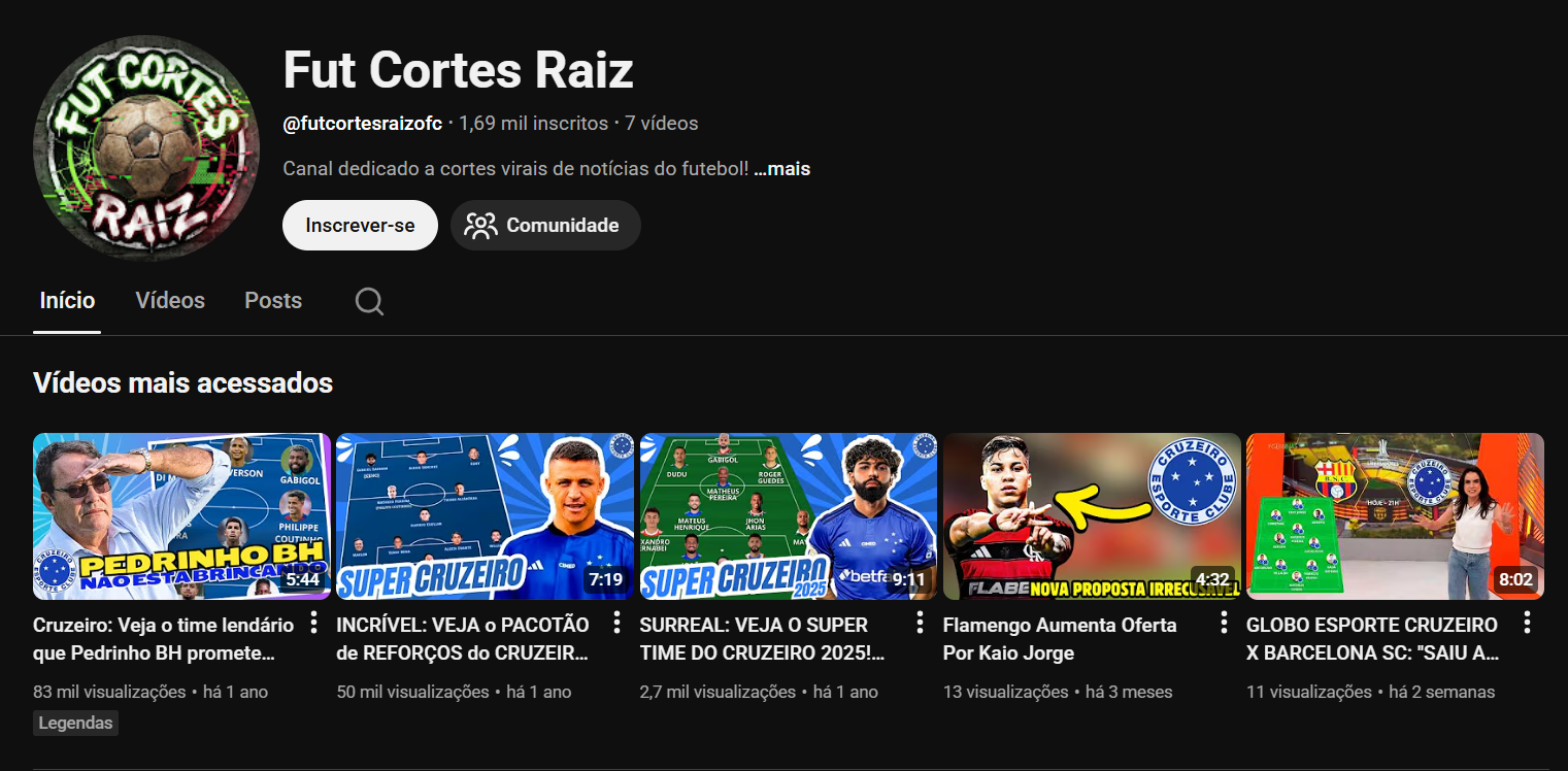 - Link da Conta: https://www.youtube.com/@futcortesraizofc