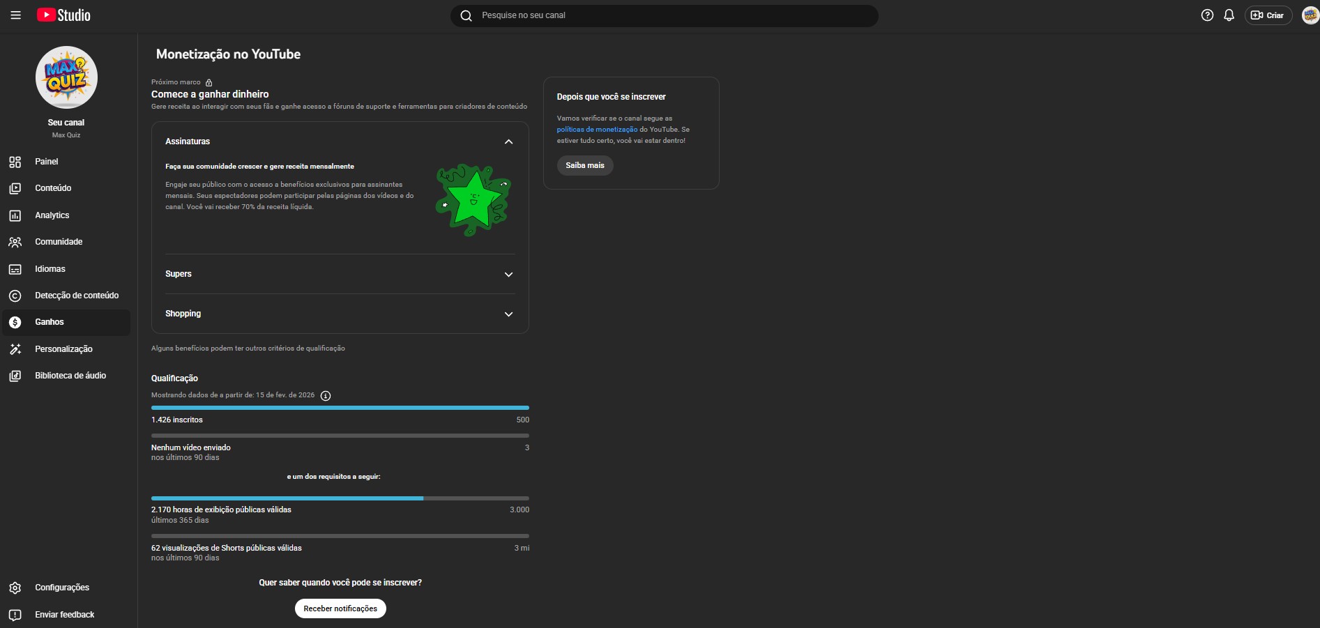 - Link da Conta: https://www.youtube.com/@canalmaxquiz/videos