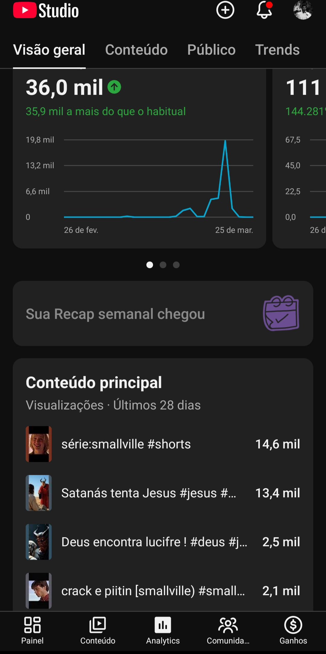 📈 +36 MIL views/mês e quase 1.000 inscritos (falta pouco para monetizar!).