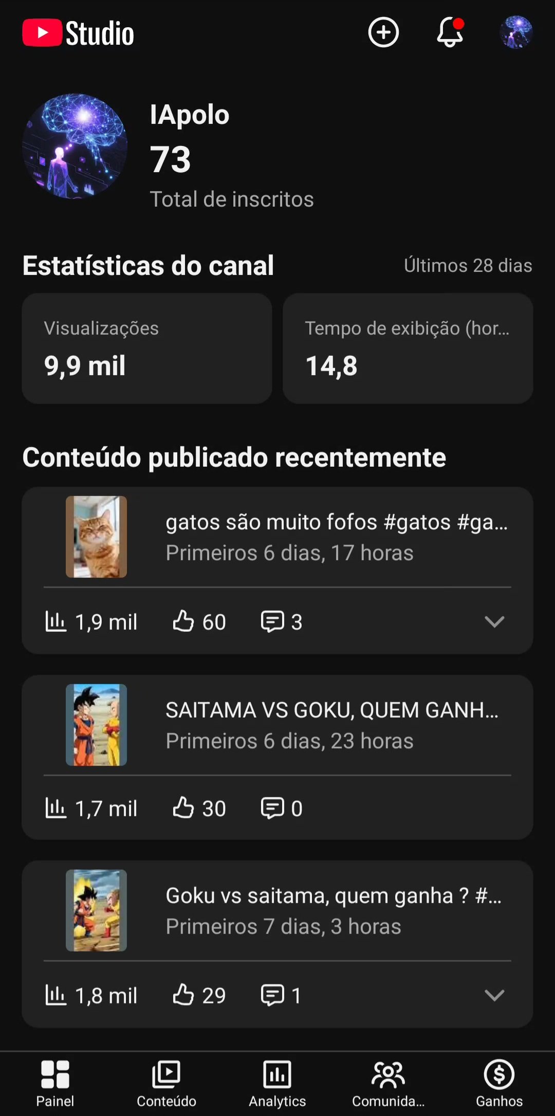 🤖 YouTube IApolo: Canal focado em IA, com +10k views recentes e alto potencial de escala. ⚡
