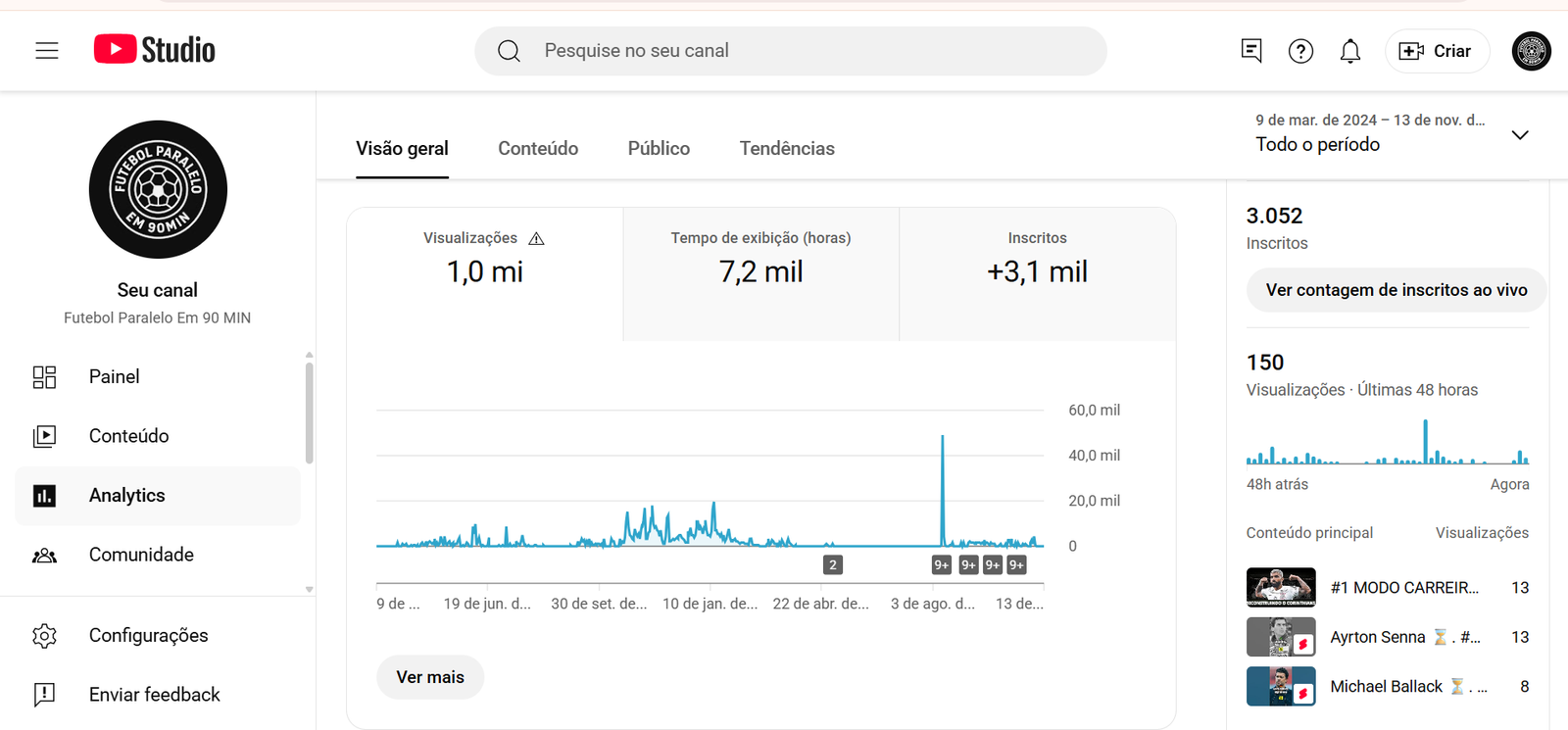 Se você quer entrar no YouTube com vantagem REAL, sem começar do zero, e quer um canal com público apaixonado por futebol e excelente histórico de desempenho, esse é o momento perfeito.