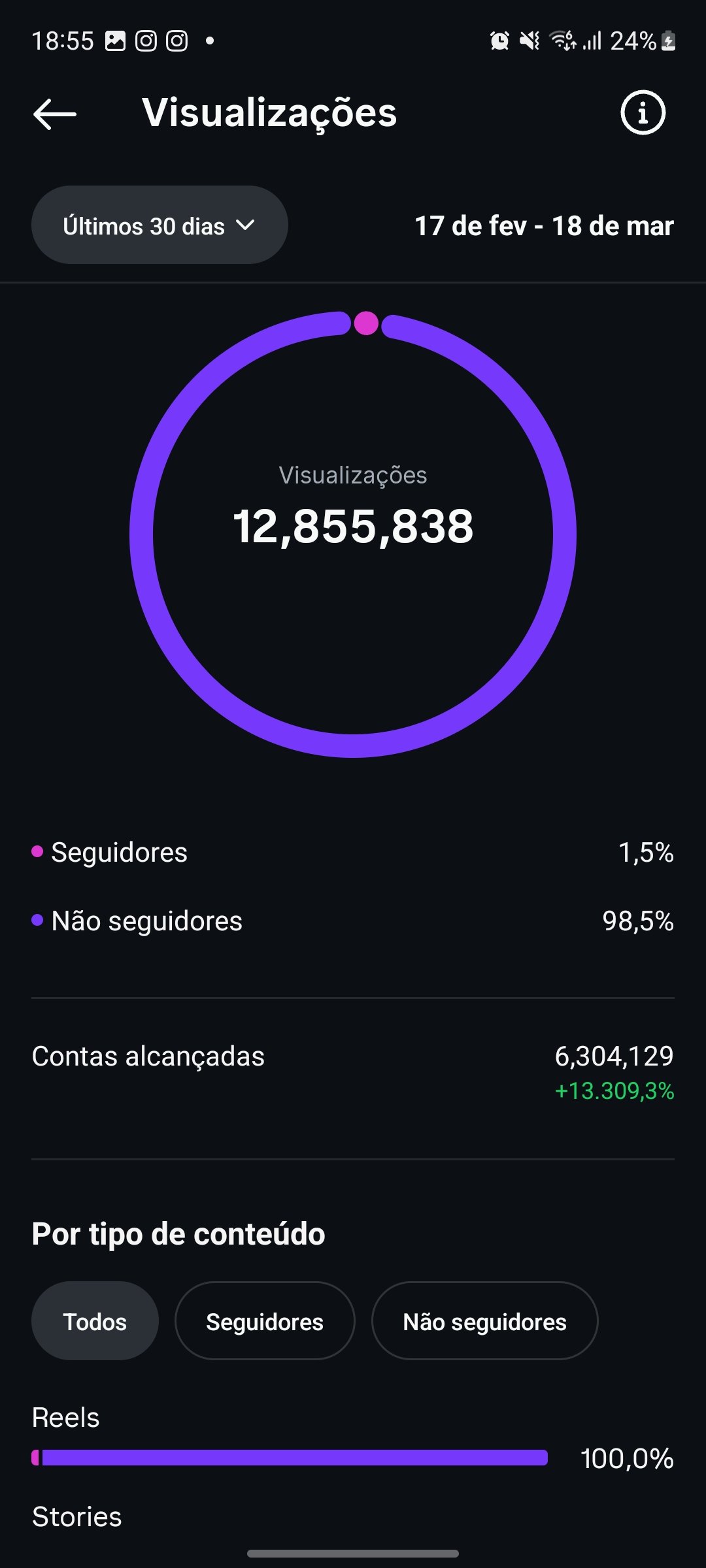 Página com 16.8k de seguidores 100% orgânicos, está com quase 13 milhões de visualizações no reels, boa para divulgação de produtos e empresa