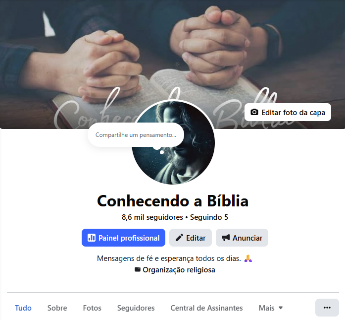 - Link da Conta: https://www.facebook.com/conhecendoabiblia.oficial/