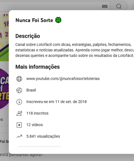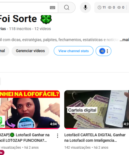 Canal YouTube antigo nicho Loteria / Ganhar Dinheiro 118 inscritos