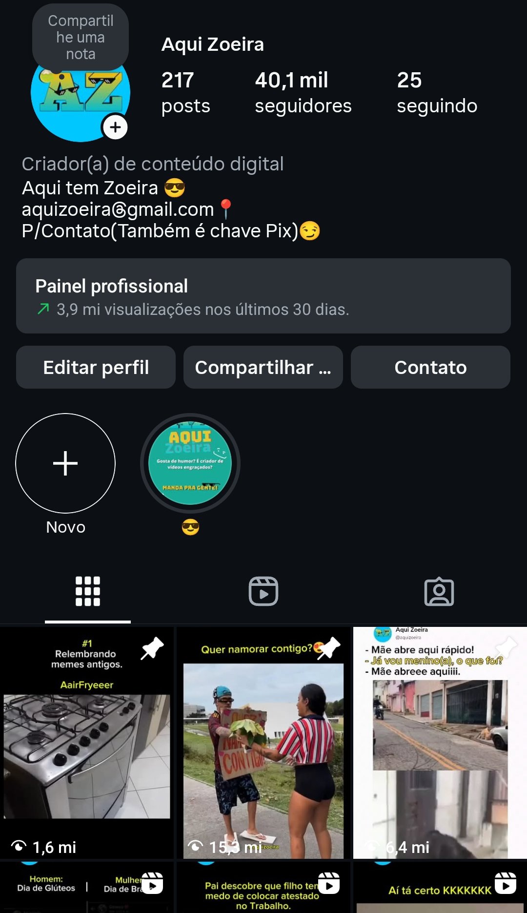 Página Instagram Aqui Zoeira com +40Mil seguidores.